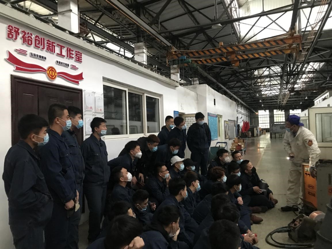 初入哈锅,哈锅选派企业专业人员对全体学生进行了安全专题教育,强调了安全第一!此后对学生进行分组及师傅分配,并根据校企联合制定的课程大纲和计划,将课程教学与岗位训练相对接,由企业焊接技能大师与学校专业课教师根据实际岗位技术需求进行联合授课,将专业必需的理论基础知识与生产实践紧密结合,充分利用企业技术资源和设备资源,师傅手把手有针对性的进行实践指导。