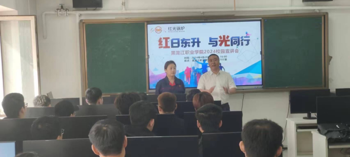 哈尔滨红光锅炉集团人力资源部刘佳表示,不久前通过城市热能应用技术专业负责人宋海江与我单位的密切沟通,使得校企双方互通、互联,达成校企合作共识,按集团关于2024年度人才招聘岗位和指数设置,希望公司通过校企人才供需见面会,企业与热能、焊接、电子类专业人才达成实习、就业协议,以此为契机共同建设黑龙江红光产业学院,以便今后进行深度校企合作,在黑龙江红光产业学院的平台上共同为龙江供热贡献力量。