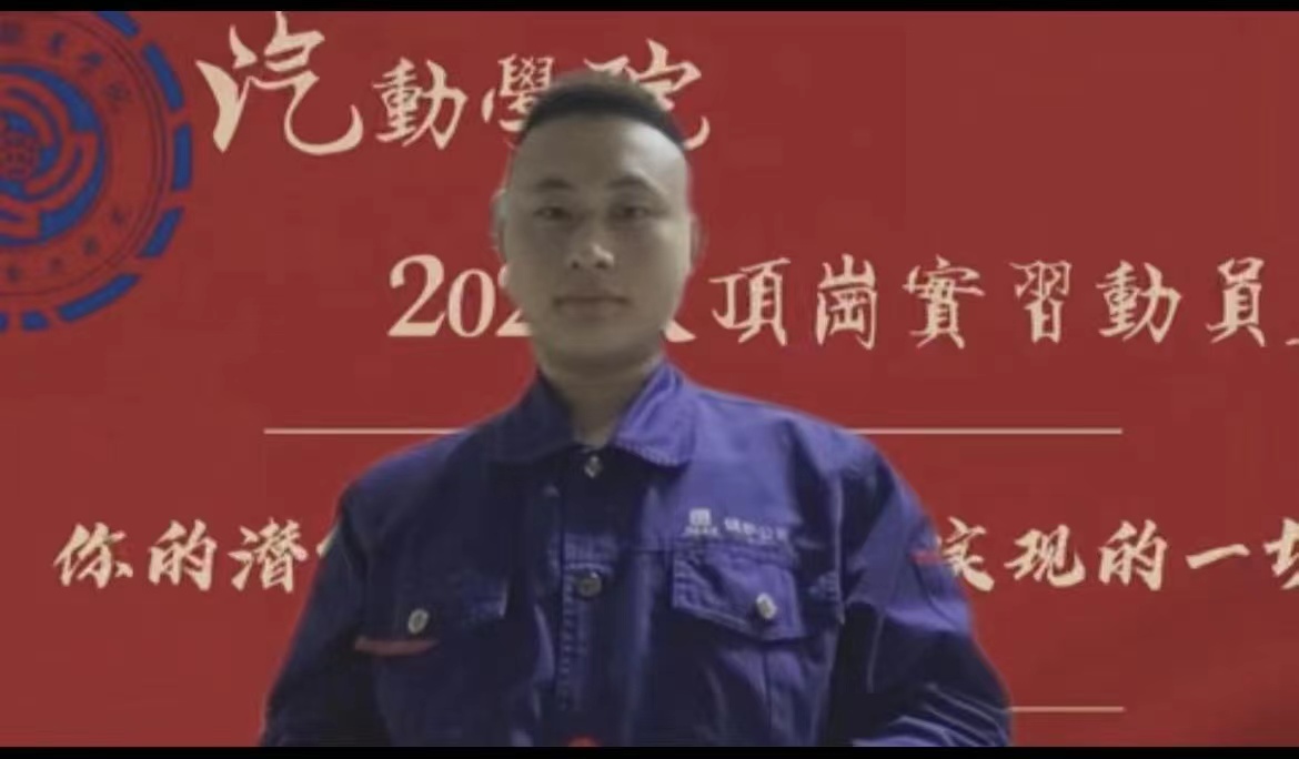 苑国庆同学首先感谢学校为自己推荐了中意的顶岗实习单位,讲述了在实习单位的工作内容,工作中的注意事项,介绍了企业的福利待遇,企业文化。鼓励学弟学妹以积极心态对待顶岗实习,珍惜学校和老师推荐的实习岗位,最后祝即将走向工作岗位的学弟学妹们工作顺利,学习进步,早日成为新时代社会主义建设者和接班人,只有珍惜当下,才能踏实的走好人生路,引导学弟学妹不忘龙职初心、牢记汽动使命,并祝愿母校桃李满园,为国家培育更多龙职精英!