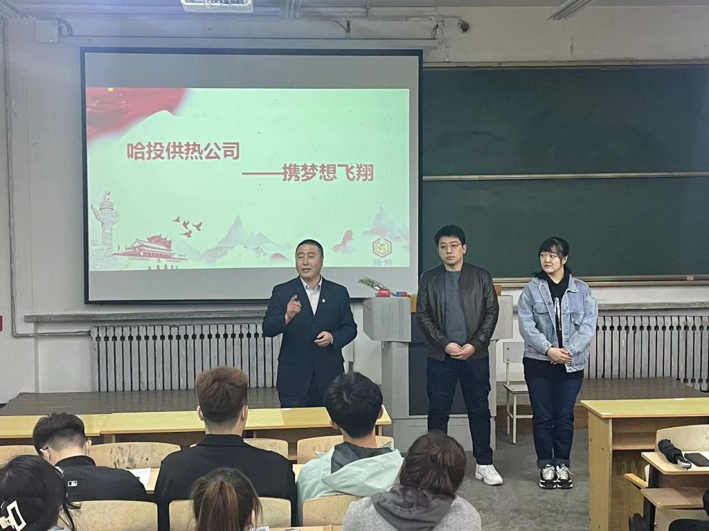 2023年04月11日,哈尔滨哈投投资股份有限公司供热公司人力资源部经理杨汉伦、王雨莹莅临汽车与动力学院就校企合作、产教融合、双主体育人、社会服务、学生就业等项目进行洽谈,汽车与动力学院党总支书记田浩鹏、副院长张春东、城市热能应用技术专业教研室主任宋海江参加本次活动。