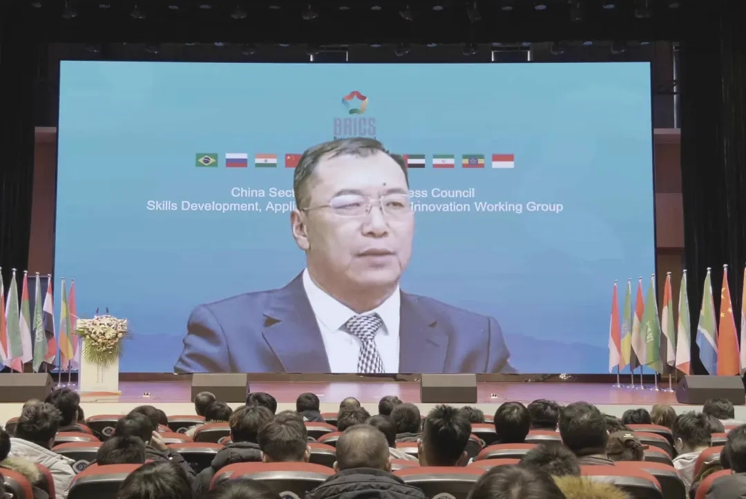 教育部中外人文交流中心副主任张学仁视频致辞时表示金砖大赛作为各国青年搭建交流互鉴的平台。选手应秉持工匠精神与开放包容等人文理念,展现专业技能与创新素养,助力深化相关国家职业教育与新能源汽车领域合作。