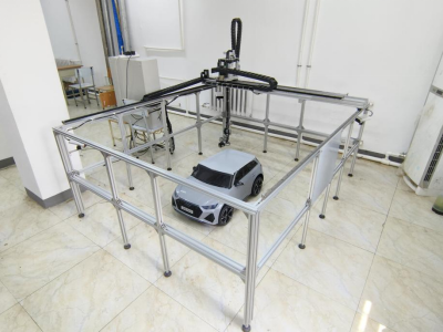 我院的竞赛作品为五轴龙门洗车机器人,通过四台深度相机扫描,对汽车进行3D重建,团队研发了空间刀补技术,实现机器臂完全贴合车身表面清洁作业,具有自适应、速度快、精度高、护车漆、多功能等特点。