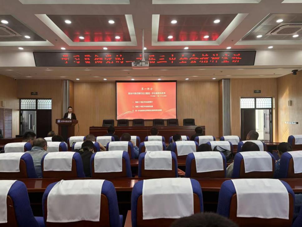 为深入贯彻习近平总书记关于宣讲工作的重要指示,按照中央、省委关于学习贯彻党的二十届三中全会精神宣讲工作有关要求,能源与汽车工程学院党总支邀请马克思主义学院秦晶娟老师为能源与汽车工程学院党员干部和学生代表共55人,在工匠楼11楼会议室学习党的二十届三中全会精神宣传讲座。