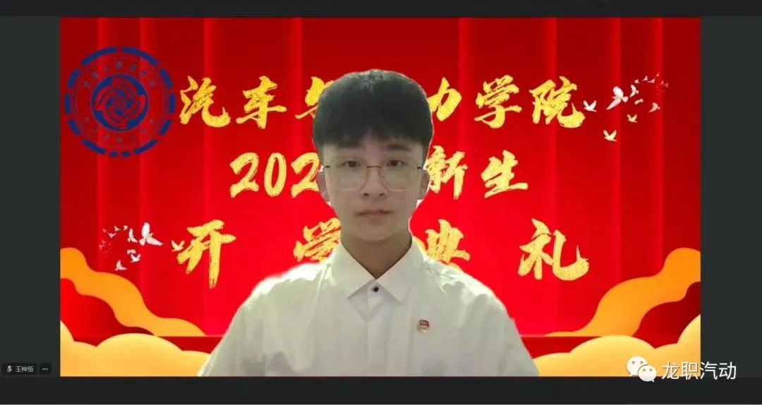 汽车制造与试验技术专业学生王梓恒同学代表新生表示,要尽快适应新的大学生活,树立明确的奋斗目标;共同营造团结友爱的生活氛围;勤奋好学,持之以恒;努力提高自己的实践能力;严于律己,树立规范意识从小事做起。最后祝全体教师身体健康,工作顺利,全体新同学在龙职这一崭新的舞台,放飞希望,接受洗礼,学有所成,为实现中华民族伟大复兴的中国梦,贡献自己的力量!