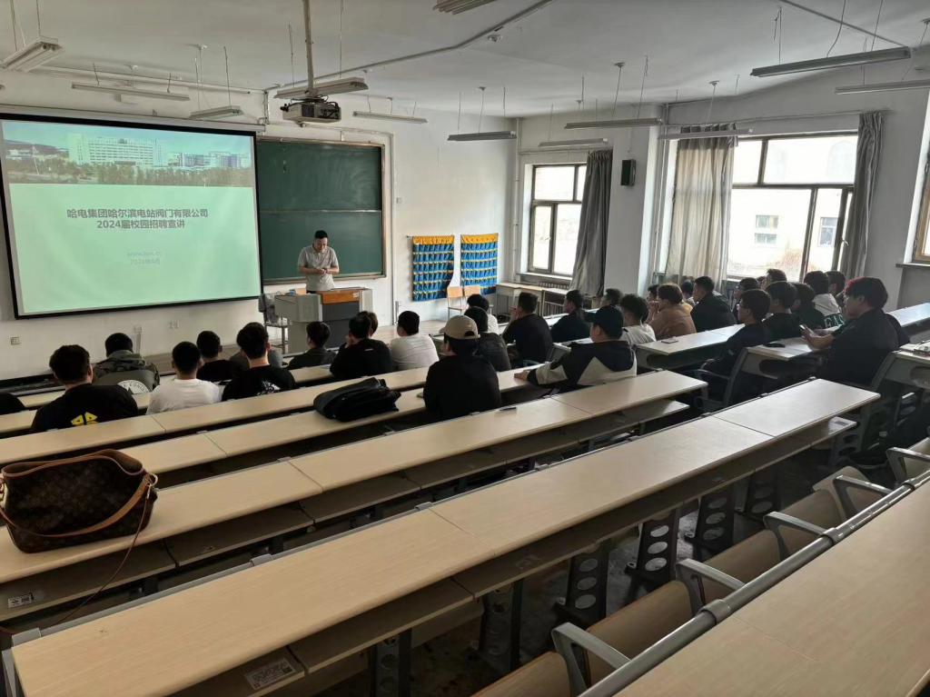 4月22日,哈电集团哈尔滨电站阀门有限公司在分院做宣讲双选会。哈电集团哈尔滨电站阀门有限公司是中国通用机械工业协会阀门分会副理事长单位,始建于1954年,是由国家“一五”期间前苏联援建的156项重点建设项目中的1项沿革发展而来。历经哈尔滨锅炉厂二车间、阀门分厂、电站阀门开发事业部、哈锅阀门股份有限公司等四个历史阶段,2008年1月,正式更名为哈电集团哈尔滨电站阀门有限公司,现为哈尔滨电气集团有限公司重要子企业之一。