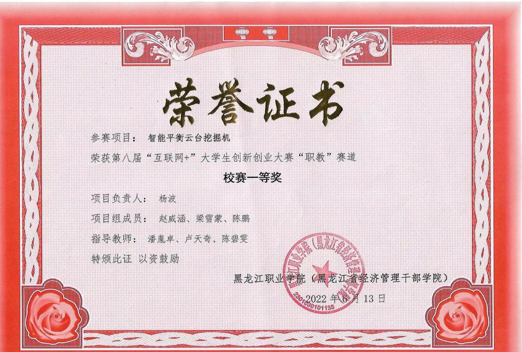一等奖的智能平衡云台挖掘机,项目负责人:杨波