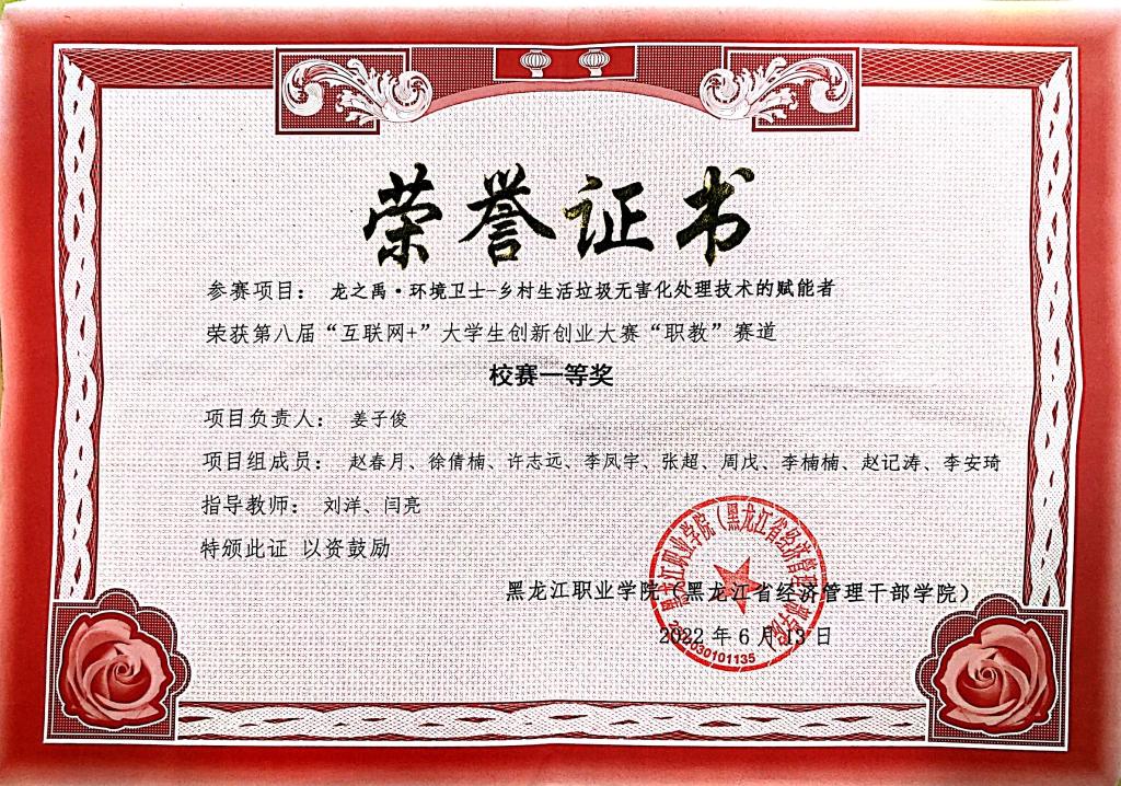 一等奖的龙之禹环境卫士,项目负责人:姜子俊