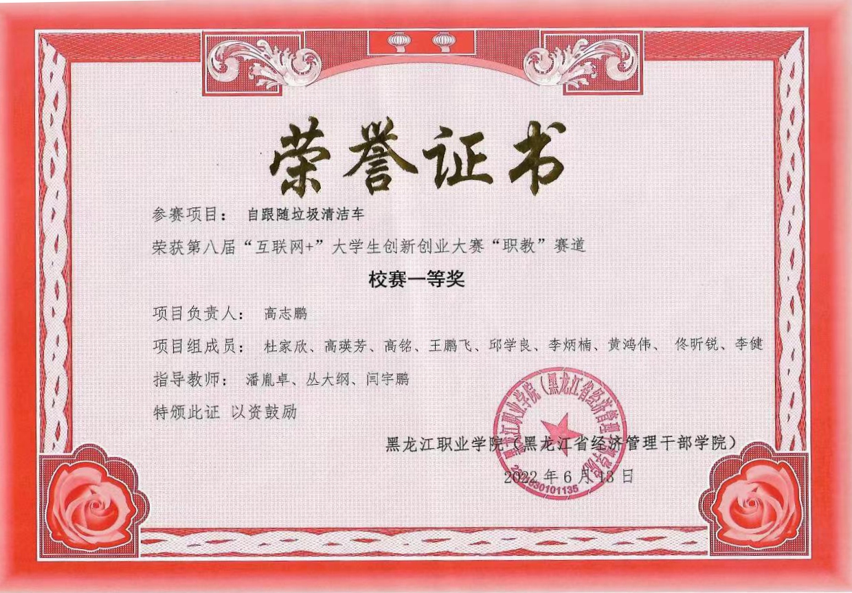 一等奖的自跟随垃圾清洁车,项目负责人:高志鹏