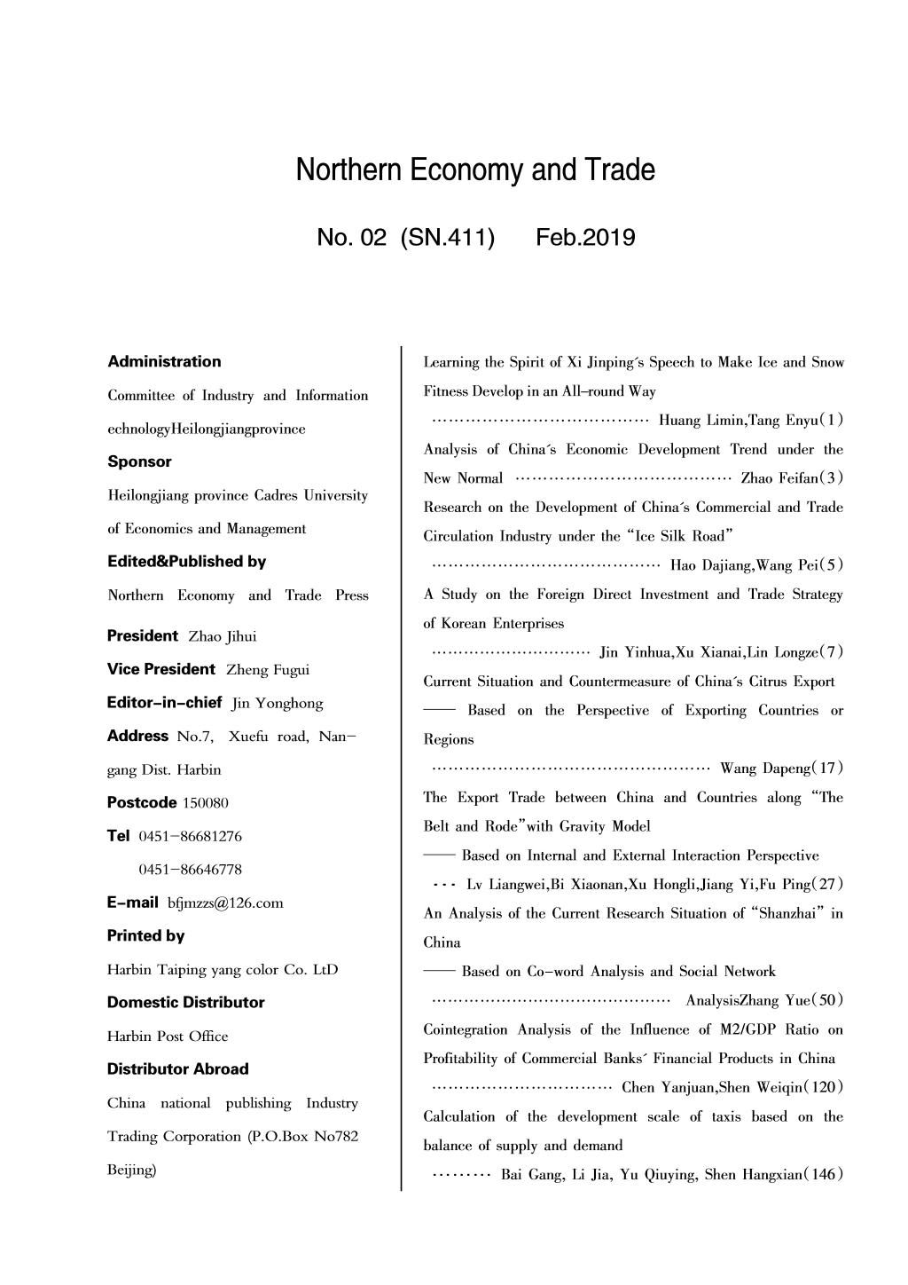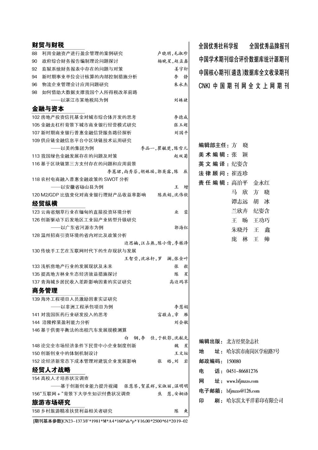 版权所有:北方经贸杂志社 地址:黑龙江省哈尔滨市南岗区学府路5号 邮编150080 电话:0451-86681276 86646778 邮箱:bfjmzzs@126.com