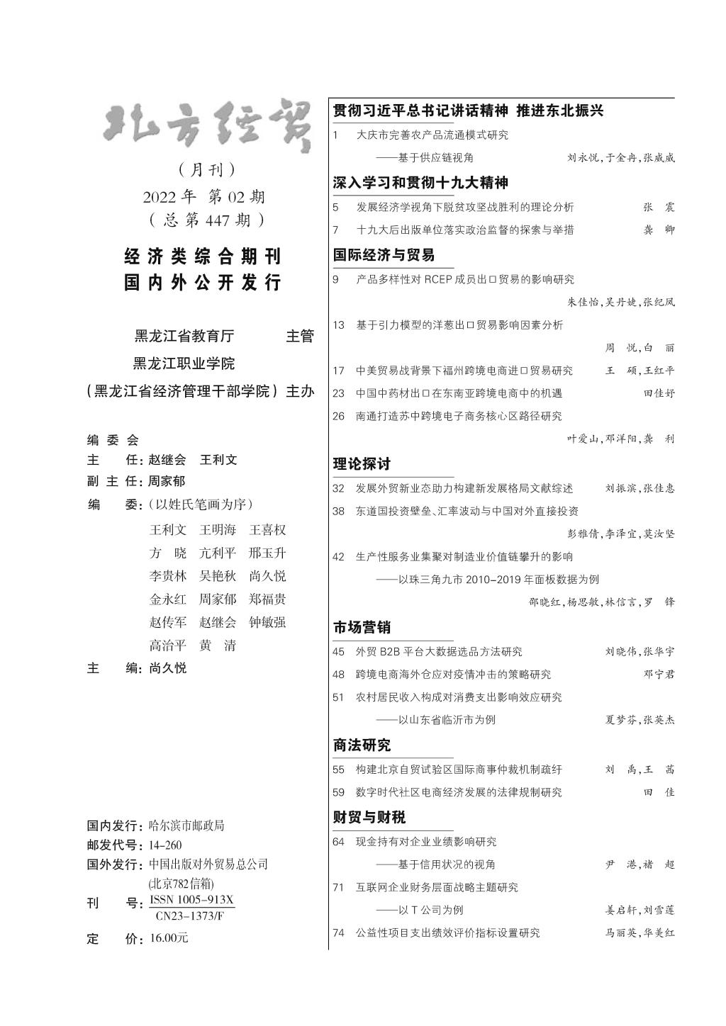 上一篇:《北方经贸》2022年二月刊