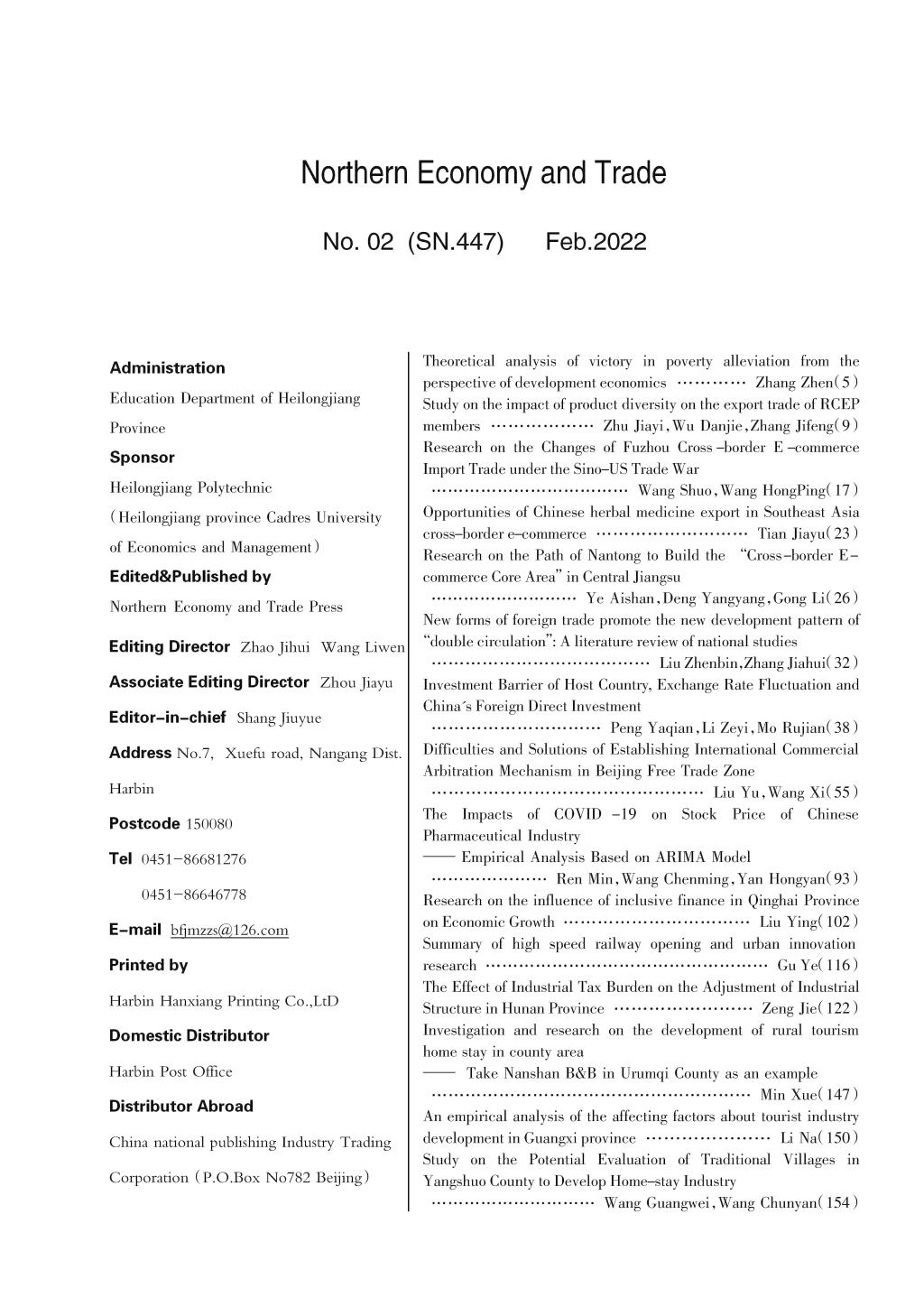 版权所有:北方经贸杂志社 地址:黑龙江省哈尔滨市南岗区学府路5号 邮编150080 电话:0451-86681276 86646778 邮箱:bfjmzzs@126.com