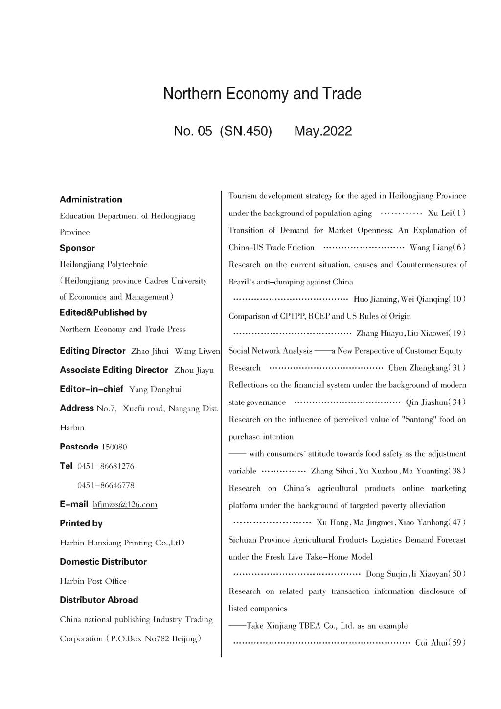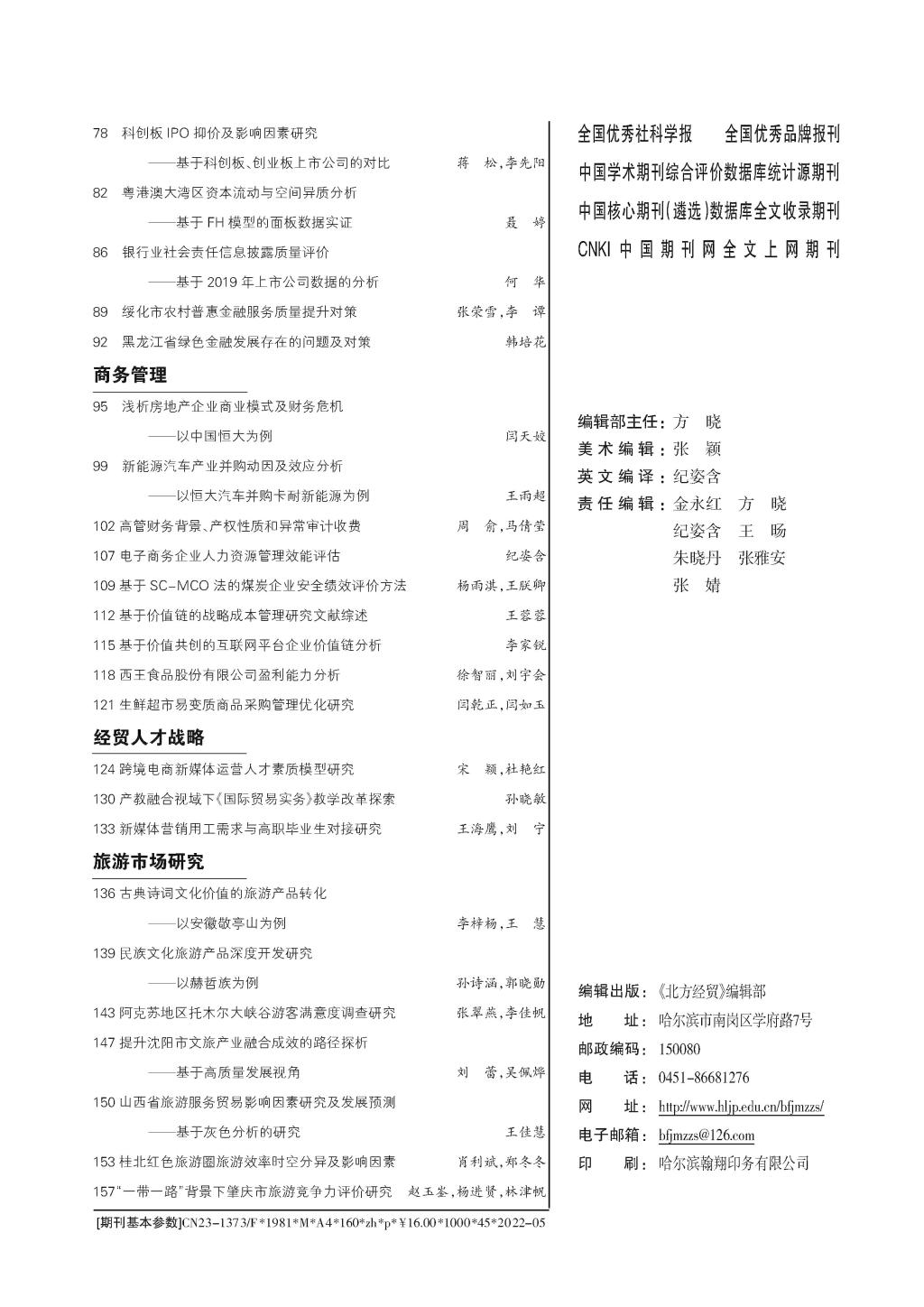 版权所有:北方经贸杂志社 地址:黑龙江省哈尔滨市南岗区学府路5号 邮编150080 电话:0451-86681276 86646778 邮箱:bfjmzzs@126.com