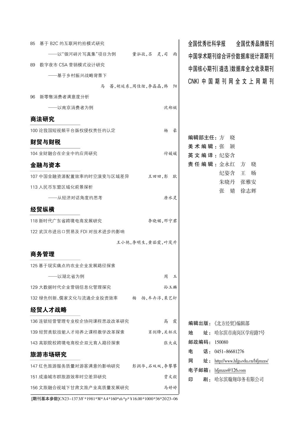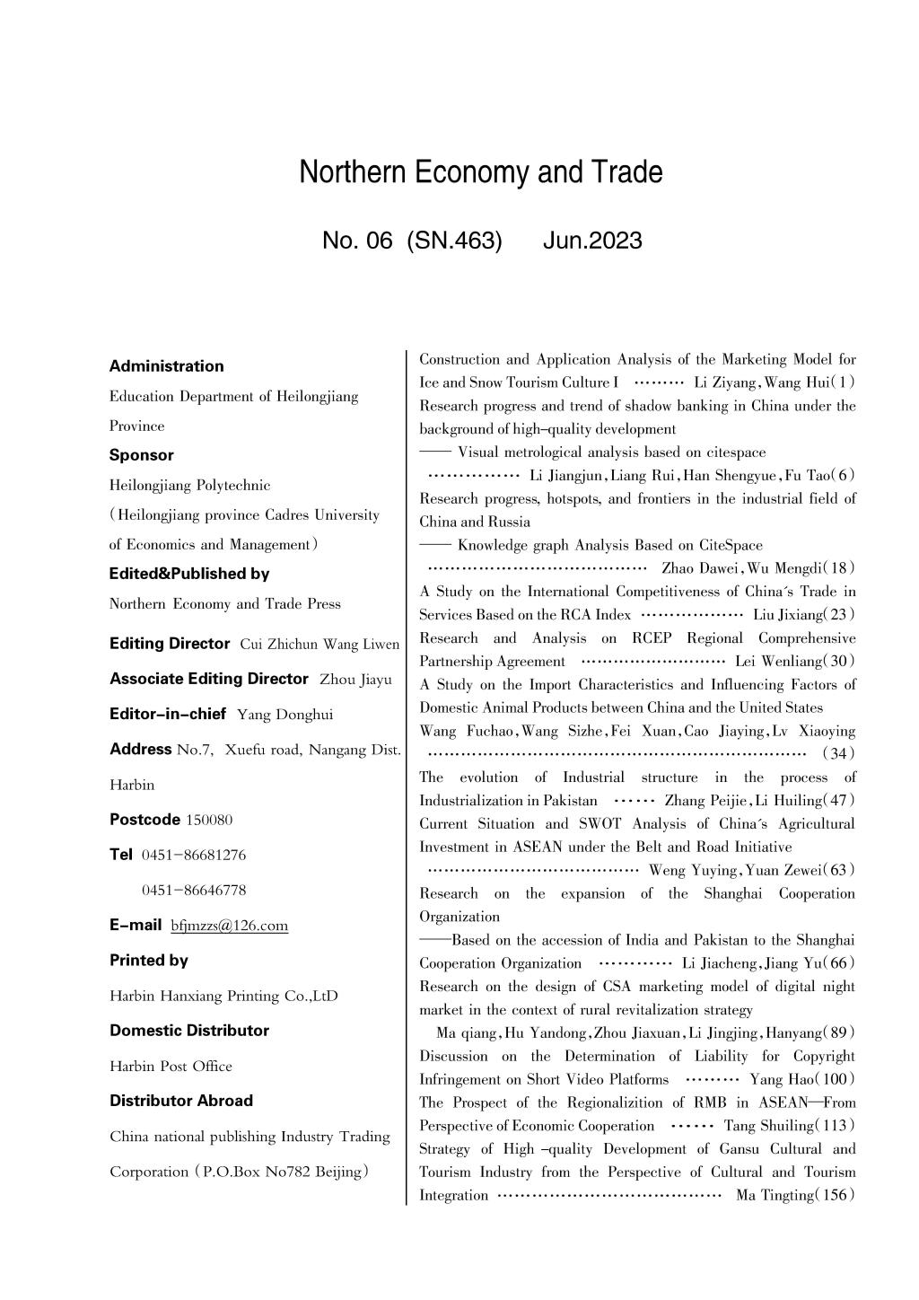 版权所有:北方经贸杂志社 地址:黑龙江省哈尔滨市南岗区学府路5号 邮编150080 电话:0451-86681276 86646778 邮箱:bfjmzzs@126.com