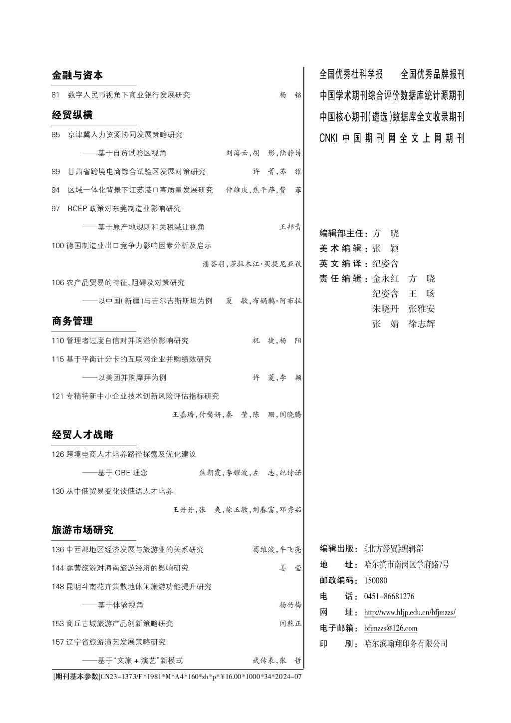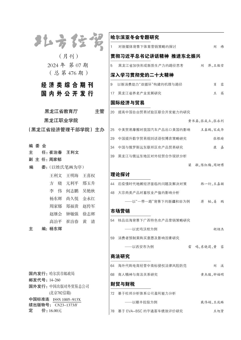 版权所有:北方经贸杂志社 地址:黑龙江省哈尔滨市南岗区学府路5号 邮编150080 电话:0451-86681276 86646778 邮箱:bfjmzzs@126.com