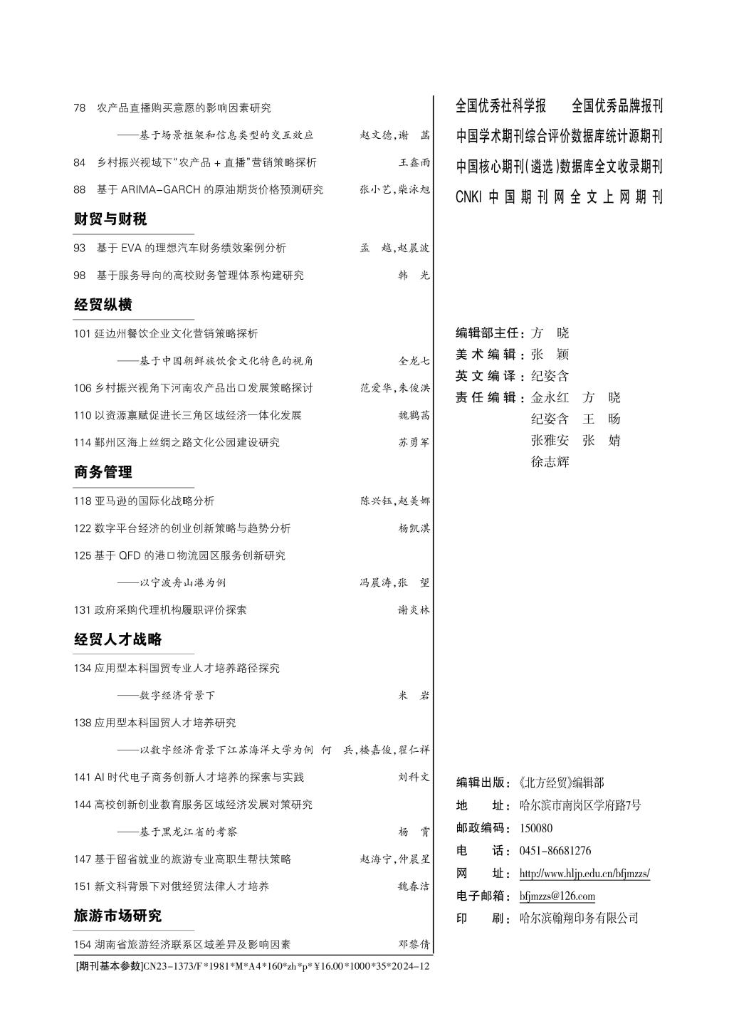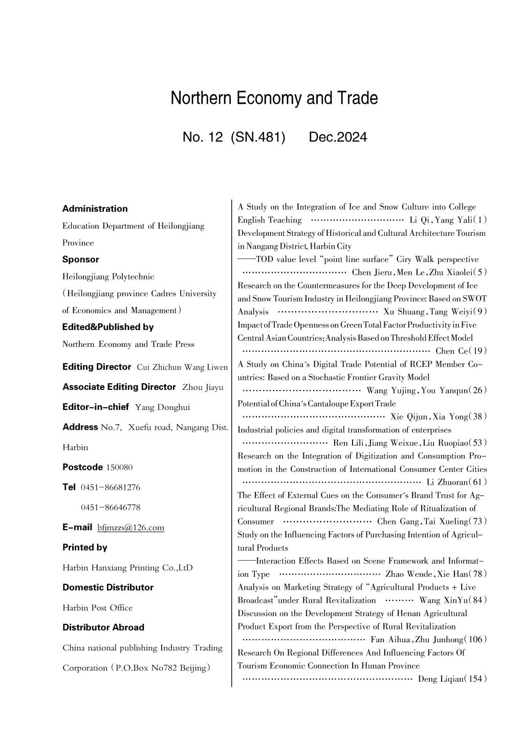 版权所有:北方经贸杂志社 地址:黑龙江省哈尔滨市南岗区学府路5号 邮编150080 电话:0451-86681276 86646778 邮箱:bfjmzzs@126.com
