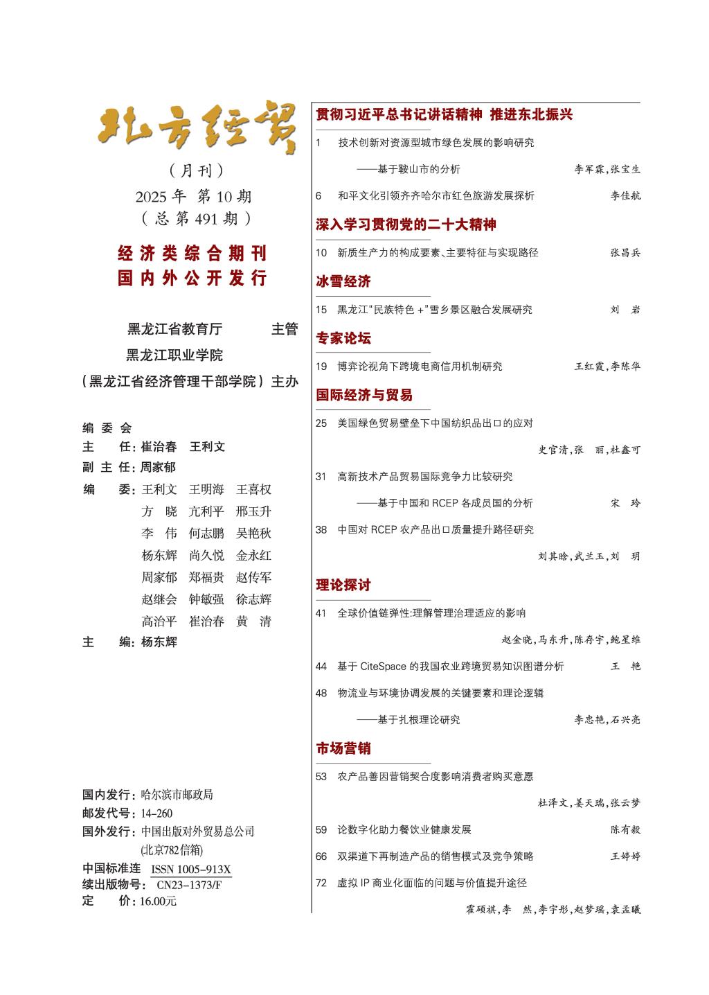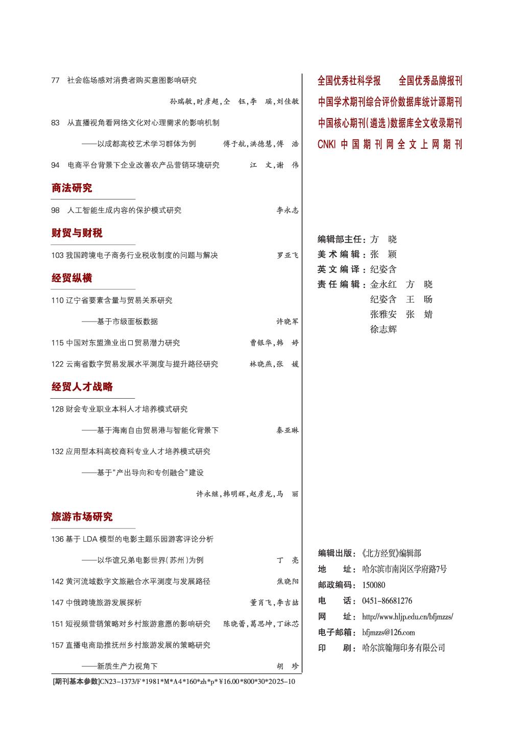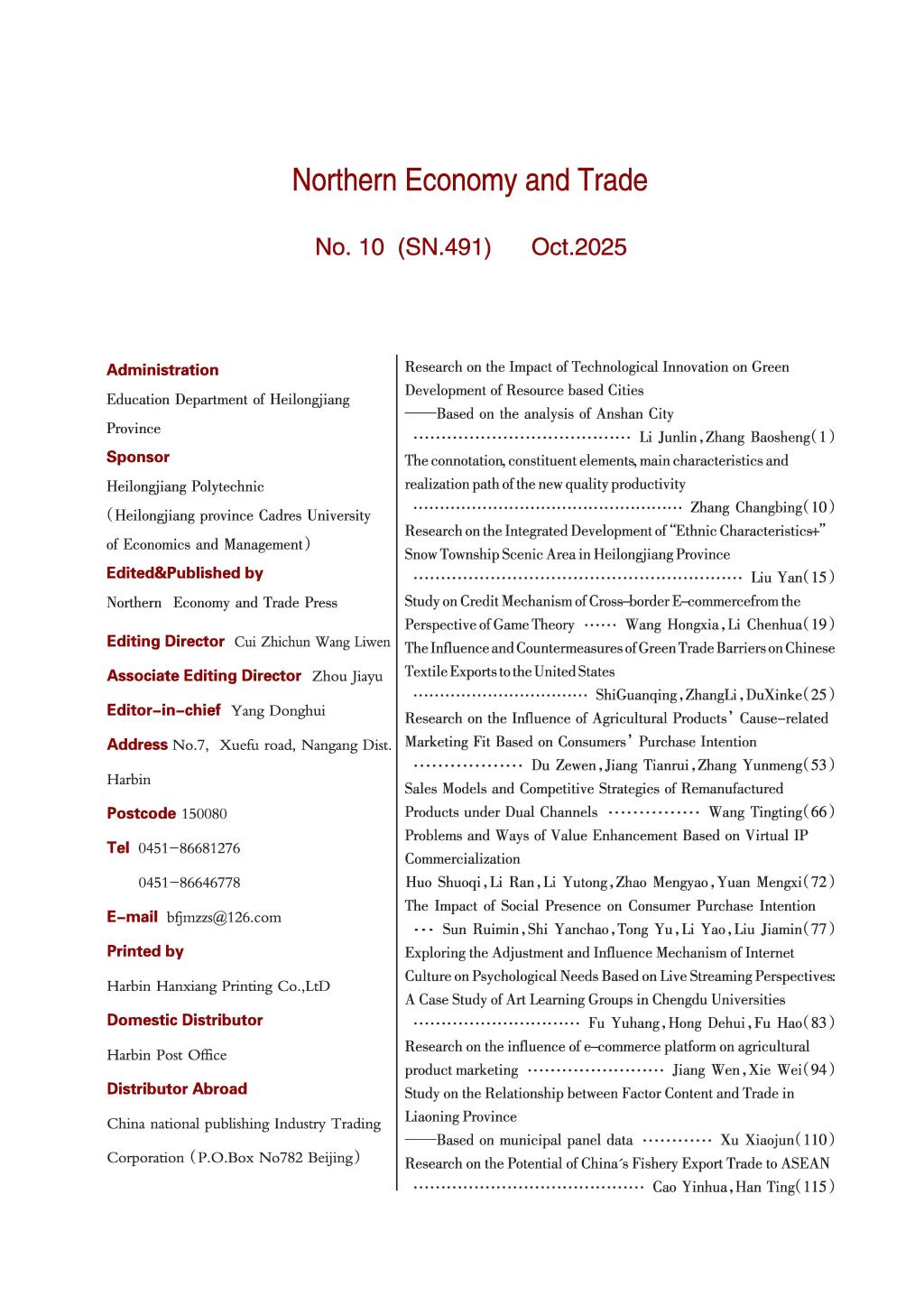 版权所有:北方经贸杂志社 地址:黑龙江省哈尔滨市南岗区学府路5号 邮编150080 电话:0451-86681276 86646778 邮箱:bfjmzzs@126.com