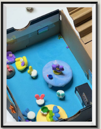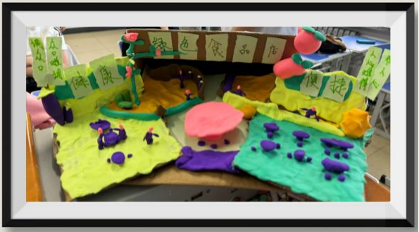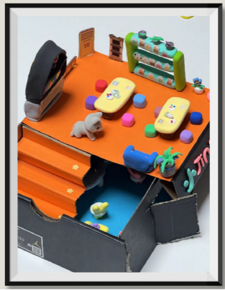 在这样的教学环境下,学生有更多的机会提出自己的想法和观点,在创意作品的设计与制作过程中,思考如何将自己的想法转化为实际作品,并在整个过程中不断尝试、调整和改进。通过设计、制作和展示自己的作品来展示独特的想法和创意。以下展示的是学生用黏土、纸壳、彩笔、卡纸等材料做的最简可行性产品(MVP)。
