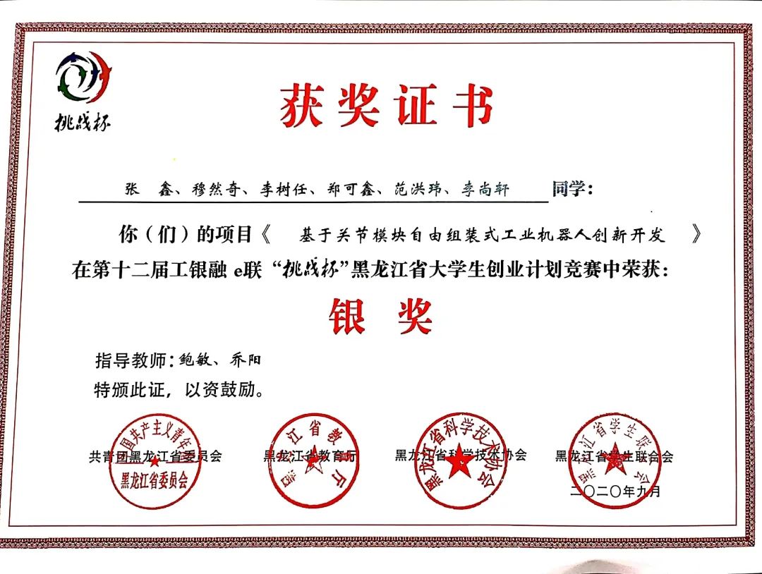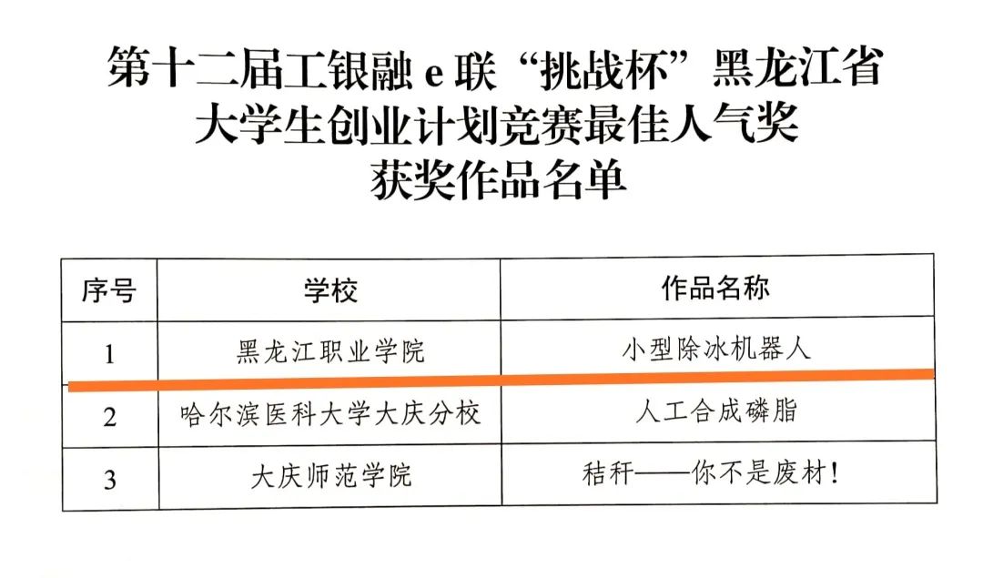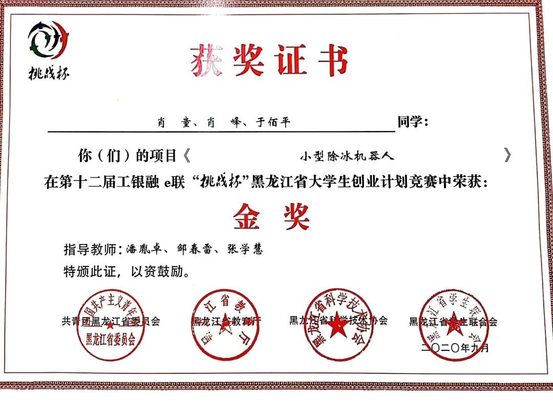9月8日,团省委、省教育厅、省科学技术协会、省学生联合会联合印发了《关于表彰第十二届工银融e联“挑战杯”黑龙江省大学生创业计划竞赛获奖集体和个人的决定》(黑青联字[2020]13号)文件,在全省各高校209件作品入围决赛的作品中,KY开元官网参赛项目荣获大赛金奖4项、银奖2项、铜奖3项,有3项作品被推荐至国赛,由机械工程学院潘胤卓老师指导、肖童同学负责的《小型除冰机器人》项目以总票数排名第一的成绩荣获“最佳人气奖”,KY开元官网荣膺大赛“优胜杯”,创造了KY开元官网“挑战杯”参赛史最佳成绩。