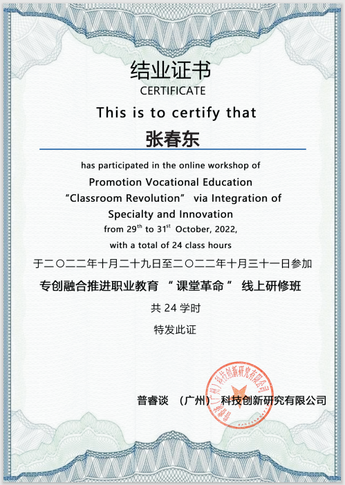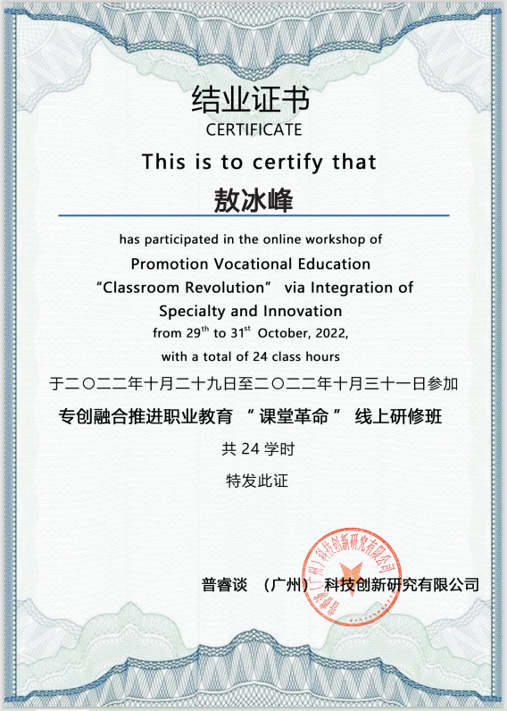 为进一步创新人才培养模式,促进专业教育与创新创业教育有机融合,提高学生创新精神和创新创业能力,按照学校工作要求,10月29日到10月31日,创新与创业学院组织学校133名教师参加了为期三天的“专创融合”课程建设线上研修班。参加“专创融合课程开发”研修班的教师均已完成既定研修学时,并获得培训方颁发的课程结业证书。