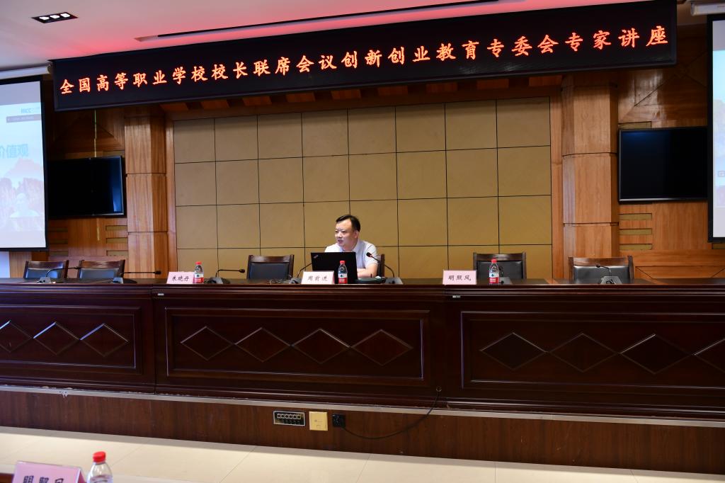 6月29日下午14时,学校特邀全国高等职业学校校长联席会议创新创业教育专委会(以下简称“校联会双创专委会”)专家在经济报告厅开展专题讲座。校长王利文、原副校长王明海出席讲座;学校各部门教师代表、二级学院学生代表参加讲座活动。讲座由创新与创业学院副院长朱晓丹主持。