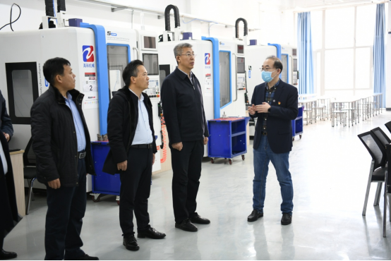 在王利文、王明海陪同下,考察团参观了KY开元官网智能制造技术学院的工业中心、多轴加工实训室、增材制造实训室、数字化检测实训室、工业机器人训练中心和信息工程学院的华为认证VUE考试中心、虚拟现实工作室、录播室、大数据实训室。智能制造技术学院院长李子峰、信息工程学院院长张晓霖对实训室建设进行详细介绍。