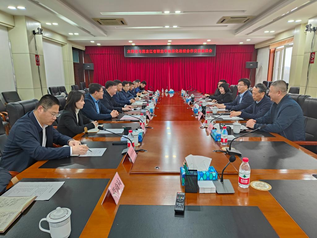 李伟提出,大同区将全力支持政校合作,愿与学校相向而行、多向发力,依靠学校的人才优势和技术优势,把大同区打造成第一个校地共建的标杆,打造成第一个产教融合的基地。史国庆在交流中提出,大同区政府要通过与龙职全口径开展合作对接,实现资源共享,合作共赢。