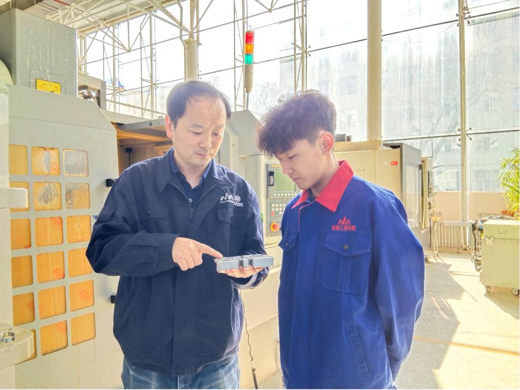 智能制造技术学院教师李宪辉、学生郎鹏程在2023年省赛“数控多轴加工技术赛项,荣获一等奖。为了备战2024全国职业院校技能大赛(高职组)“数控多轴加工技术”比赛,师生寒假期间就开始训练,在训练过程中他们专研软件、加工技术,同时还带动数控车铣复合兴趣小组成员一起学习,通过切实的加工操作使得小组成员真正的体会到理论与实际中的差距,也感受到自身的不足,激发学习动力。备赛过程是紧张而枯橾的,但是他们没有懈怠,积极努力克服所有困难,专研每一个比赛中可能出现的难点,相信他们一定会在2024年国赛中取得最好的成绩。