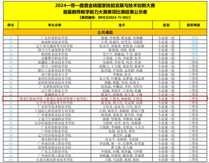 自大赛启动以来,学院领导高度重视,组织教师积极参与备赛。通过此次比赛,学院将总结经验,秉承“以赛促学、以赛促教”的理念,为助力龙江新质生产力发展,培养高素质技术技能人才,贡献“龙职”力量。