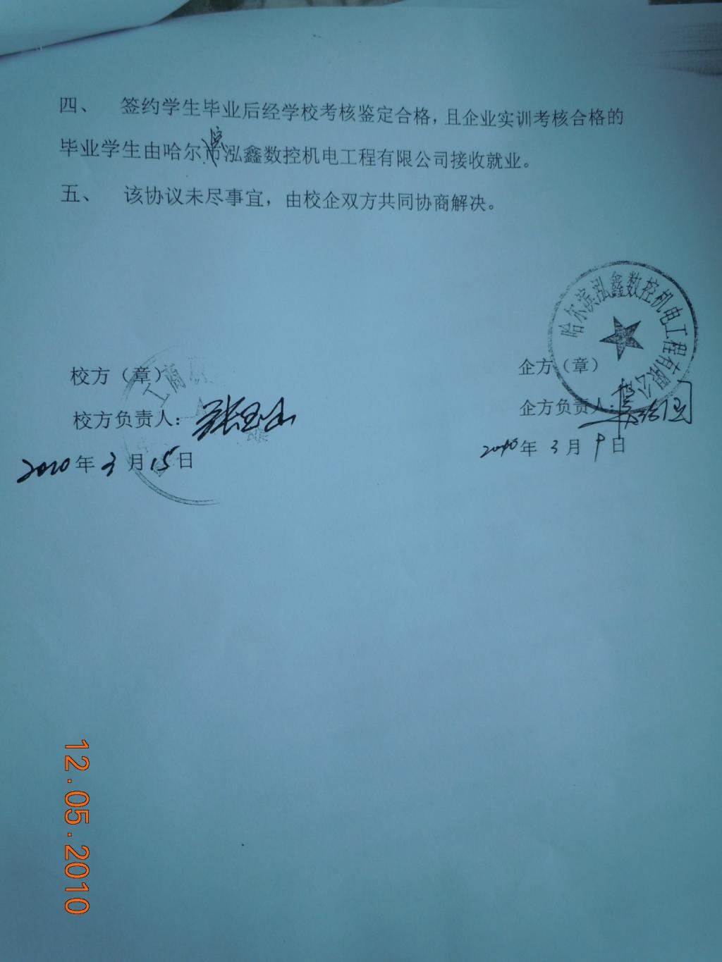 哈尔滨轰鑫数控机电工程有限公司校企“订单式”教育合作协议