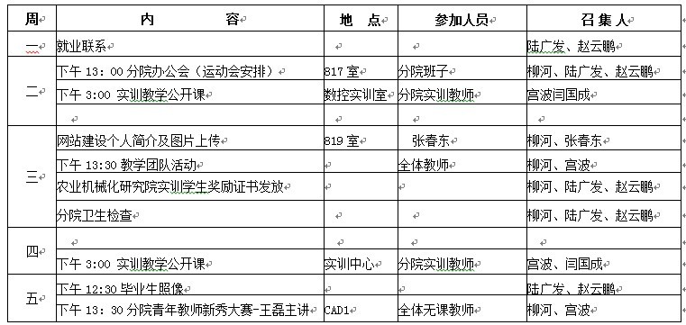机械工程学院第十一周工作安排表