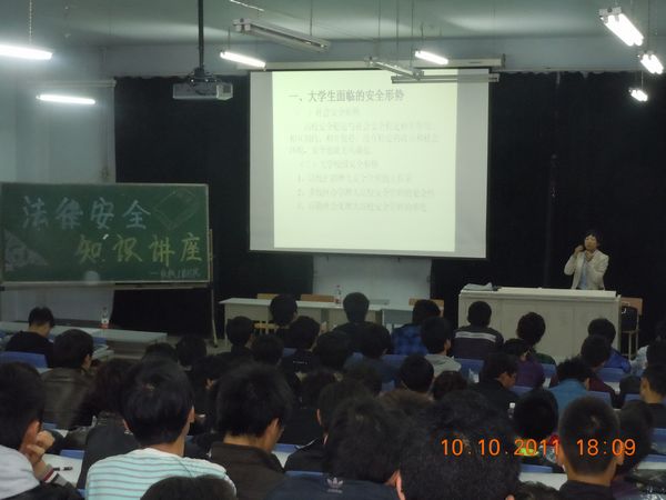 为了加强新生的安全与法律意识,顺利融入到新的大学校园生活,10月10日晚六点,机械工程学院在主楼东J -401教室为2011级全体新生举行了一场法律安全知识讲座。