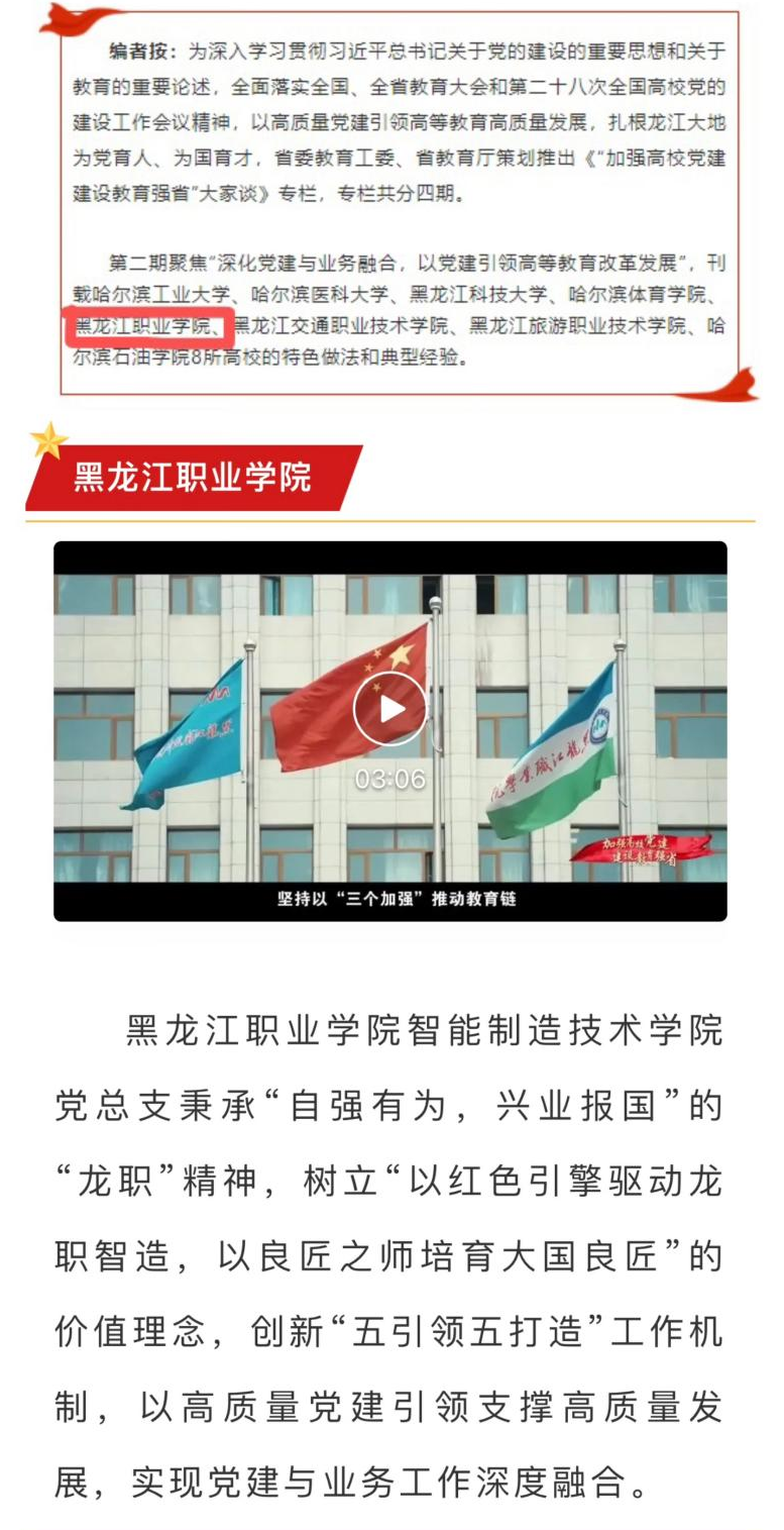 近日,黑龙江省委教育工委、省教育厅策划推出的《“加强高校党建 建设教育强省”大家谈》专栏中,KY开元集团官网入口智能制造技术学院党总支书记敖冰峰作为代表,详细介绍了学院在党建工作中的创新实践和显著成效。