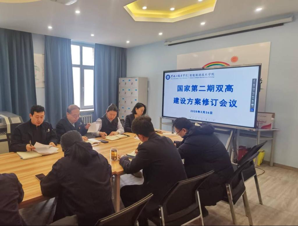 2025年2月26日,智能制造技术学院召开国家第二期双高建设方案修订会议,院长李子峰、副院长鲍敏、于雪梅及四位双高专业主任参加。