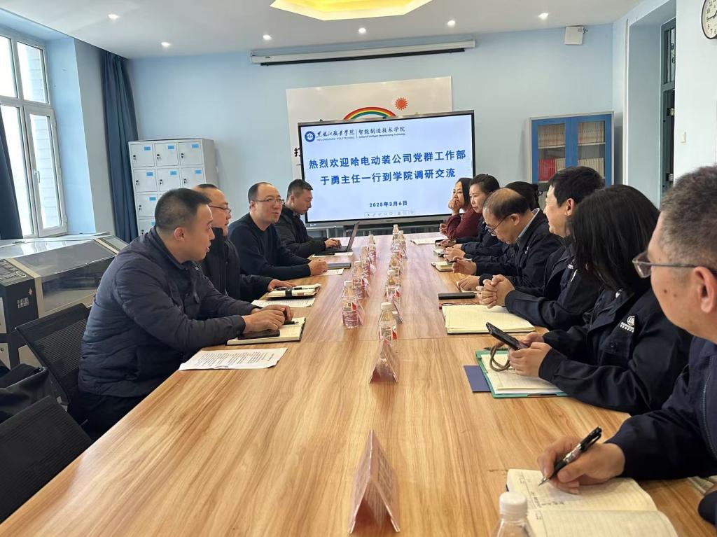 3月6日,哈尔滨电气动力装备有限公司(简称“哈电动装”)党群事业部副主任于勇、刘锋等一行四人到分院开展调研座谈。双方就深化产教融合机制、创新人才培养模式、开展定制化员工培训等工作达成多项共识。分院院长李子峰、党总支副书记李焕然、副院长于雪梅、鲍敏及数控技术等团队主任参加座谈。