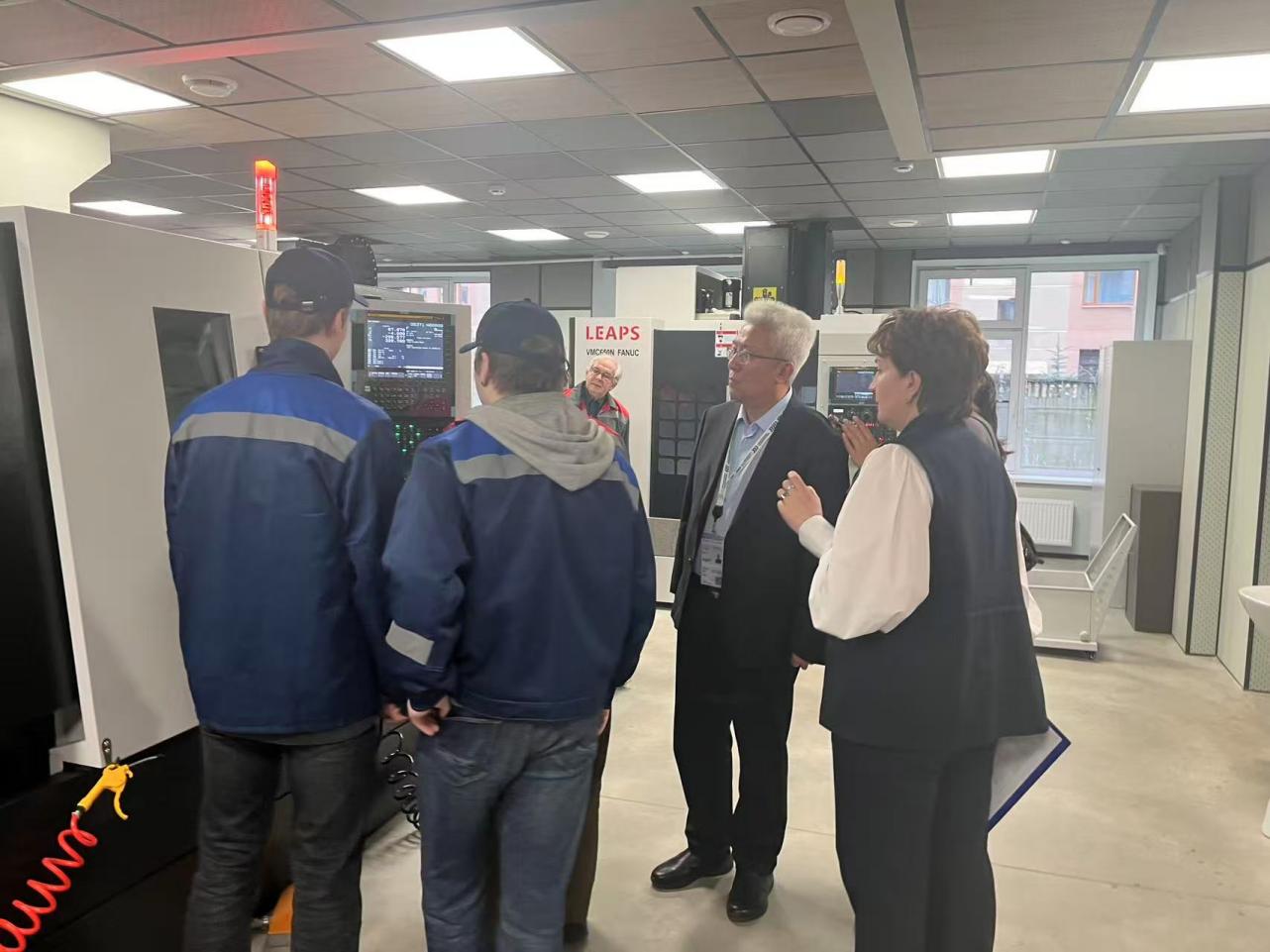 ▲敖冰峰参观圣彼得堡船舶制造和信息与应用技术学院数控加工实训室