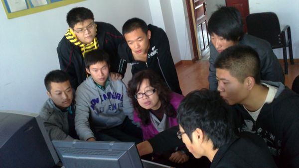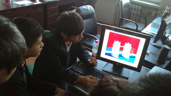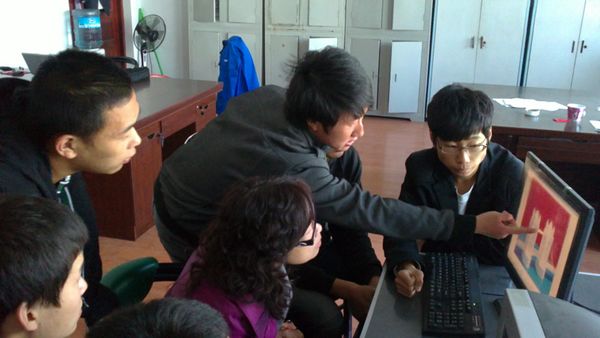 下图为李蕾老师及其学生在讨论模型制作要点