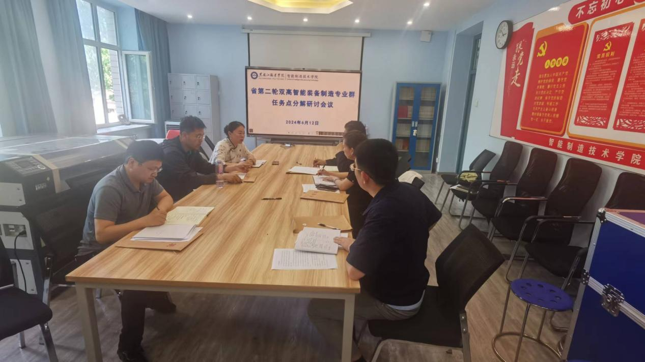 2024年6月12日,智能制造技术学院在工坊楼213召开省第二轮双高智能装备制造专业群任务点分解研讨会议,副院长鲍敏,各双高专业主任参会。会议期间,与会人员深入分析了专业群任务点的分解方法,将双高任务深度细化分解。