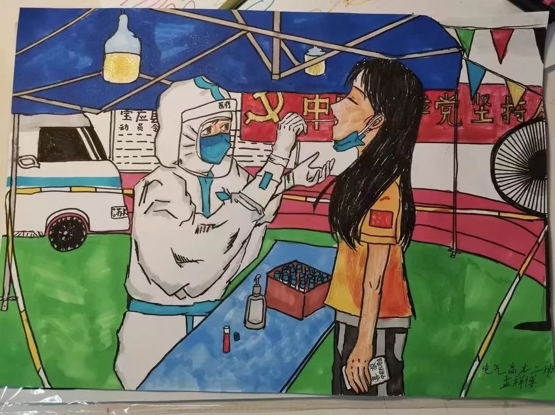 为做好2022年度学生资助诚信教育主题活动,落实立德树人根本任务,增强当代大学生的诚信意识和责任意识,按照“通知”要求,我院开展抗疫同心,青春同行“致敬战疫英雄”主题绘画活动.地铁会回归拥挤,街道会重返热闹,胡同里的早餐铺子和市中心的热闹繁华都会一如既往。相信爱与希望蔓延的速度一定会超过疫情,一切都会过去,一切都会重新开始,一切都会向着更好的前方行进!我们相信前路光明,阴霾终会散去,我们定同舟共济,风雨共度一切都会好起来,愿春暖花开,疫情散去国泰民安。