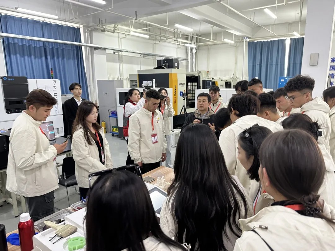 在机械加工中心,李焕然为学生介绍了3D打印技术所使用的材料种类,这些材料在打印过程中通过层层叠加的方式构建出立体物件,详述了3D打印的步骤,从设计模型到最终成品的输出,每一个环节都充满了科技的魅力。