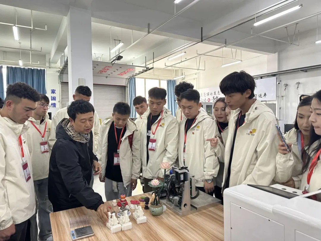 智能制造技术学院还非常注重实践教学。工业中心里,学生们在老师的指导下进行着各种实验和操作,锻炼自己的实践能力和创新思维。老师也向阿勒泰职业技术学院的学生讲述了数控机床是如何去运作。