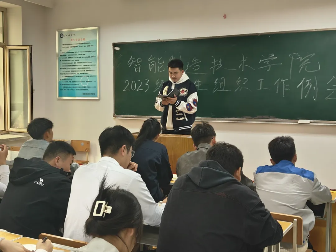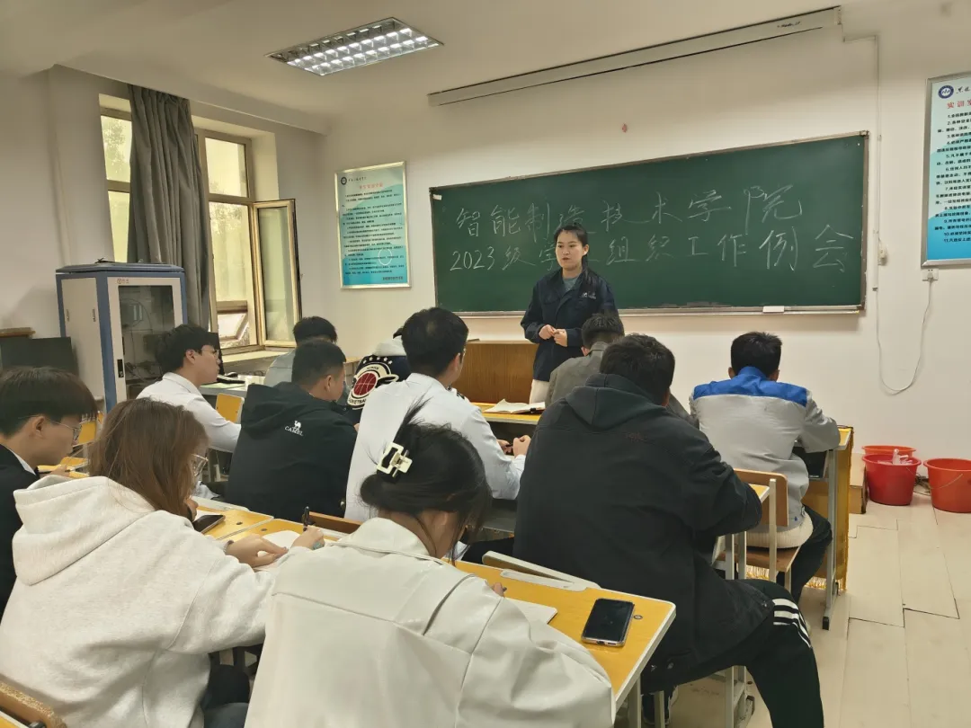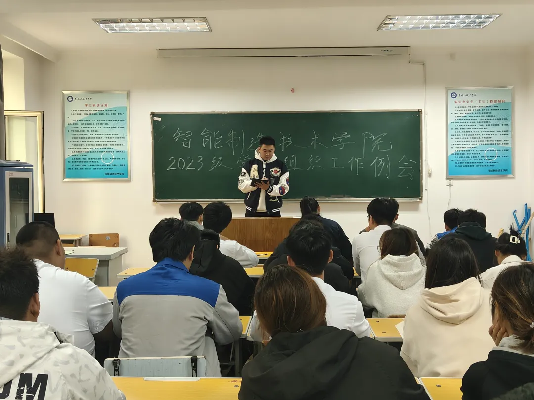 为更好发挥2023级学生组织能动性,更好地服务广大学生,加强学生组织建设。智能制造技术学院团总支于2024年10月14日中午12:00时,在工坊楼301室召开本学期2023级学生组织工作例会,2023级学生组织全体成员参加本次会议。