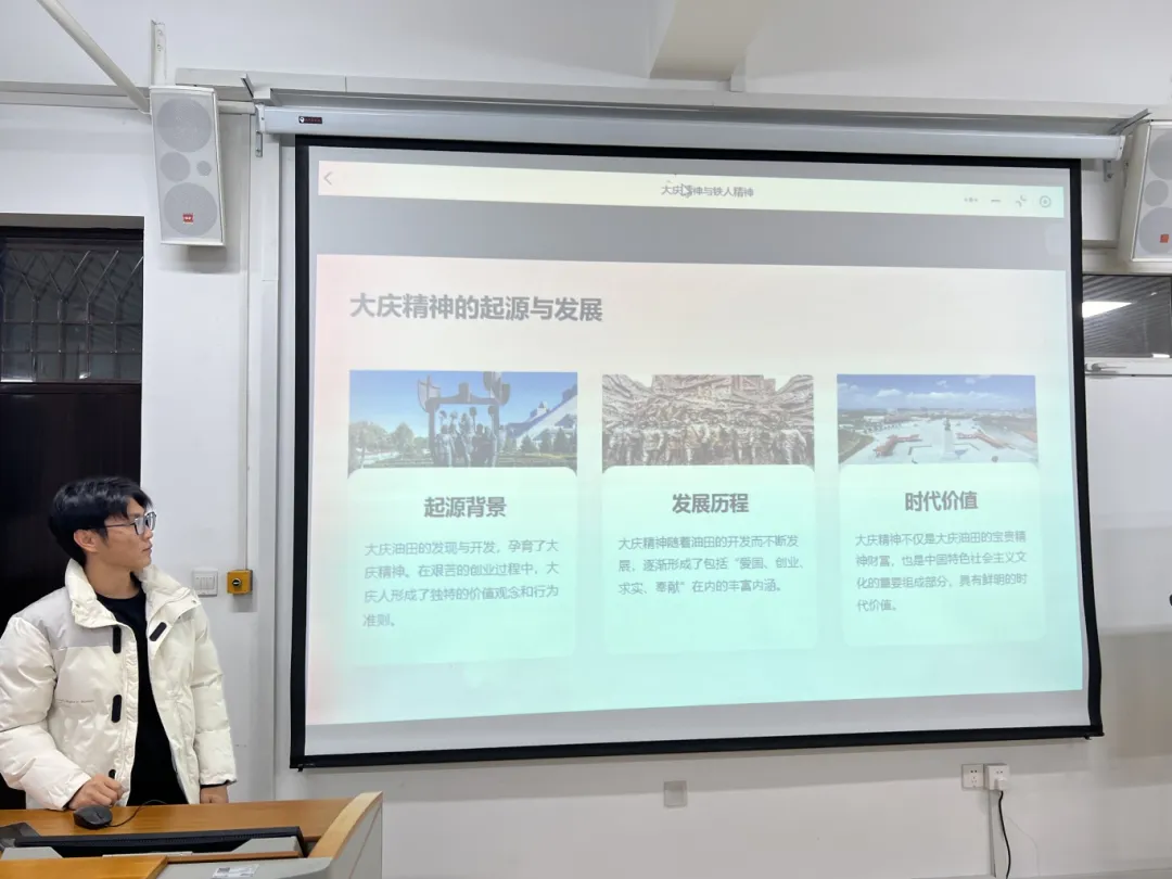 通过重温“东北抗联精神”的英勇抗争、“北大荒精神”的艰苦创业、“大庆精神”的辉煌成就以及“铁人精神”王进喜的感人事迹,激励了同学们在新时代背景下继续发扬艰苦奋斗、无私奉献的精神,为实现中华民族伟大复兴的中国梦贡献力量。