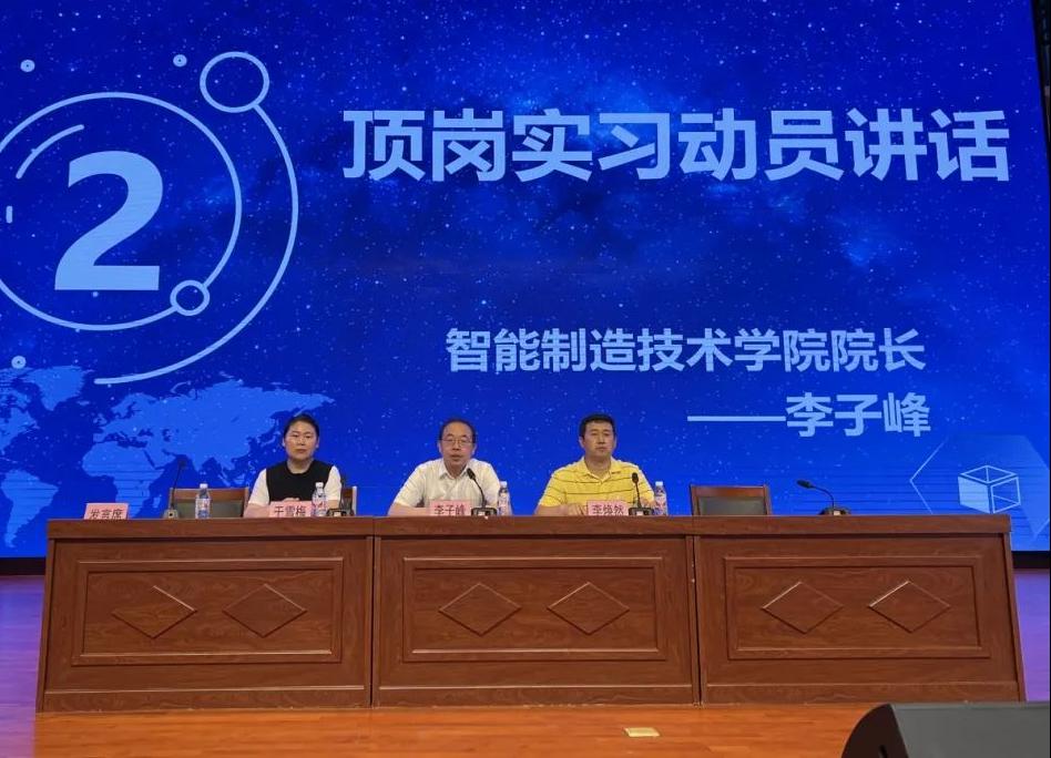 智能制造技术学院于2024年6月28日下午14:00在工匠楼三楼礼堂召开了2022级学生顶岗实习动员大会,副院长李子峰、党总支副书记李焕然、副院长于雪梅和学院部分教师参加会议。本次会议不仅为同学们送上了深切的祝福,更从专业角度出发,为大家指明了实习的方向与重点。