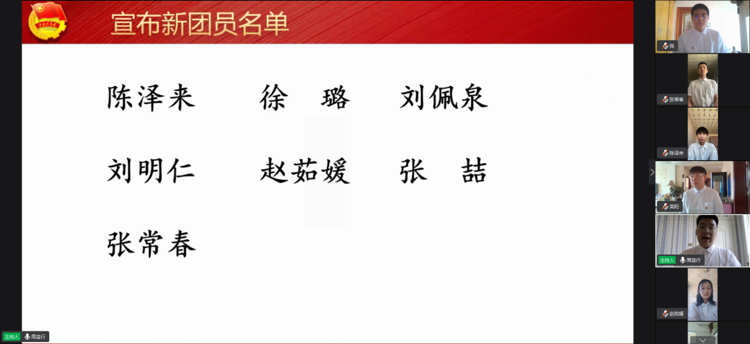仪式第二项:团总支学生副书记周益行,说明入团仪式的意义、宣布新团员名单;