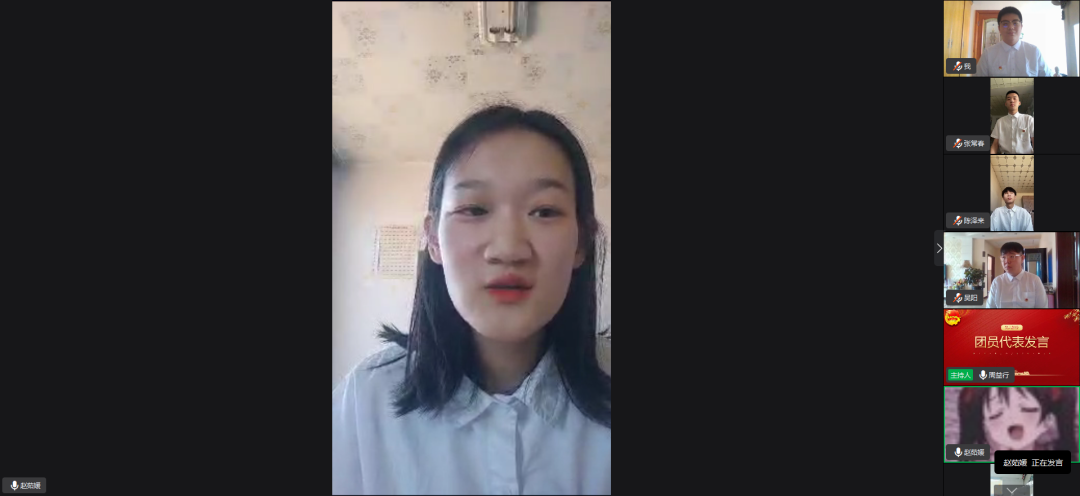 仪式第六项:团员代表发言;新团员代表赵茹媛、老团员代表陈思睿分别代表新老团员进行发言;