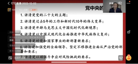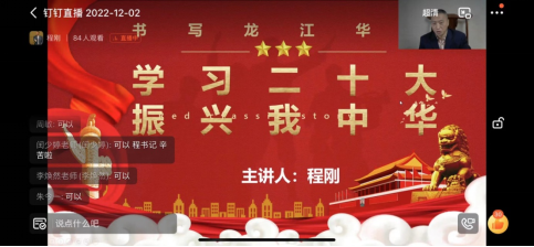 12月2日下午,按照学校通知要求,马克思主义学院党总支书记程刚紧扣“砥砺奋进新征程、学习贯彻党的二十大”这一主题,为智能制造技术学院全体教职工带来了一场题目为《学习党的二十大振兴我中华——党的二十大精神指引 培养革命接班人》的理论宣讲盛宴。从导言、时代新宣言、主义新境界、育人新华章四个方面,通过融入《论语》、《易经》、《孟子》、《道德经》等国学元素,通俗易懂、活泼有趣的形式,用听得懂、接地气的语言,打通宣讲“最后一公里”。系统阐述建党以来特别是中国改革开放以来取得的伟大成就,党的二十大报告更像是一本百科全书,歌颂了中国共产党取得的丰功伟绩和为世界所做的巨大贡献。