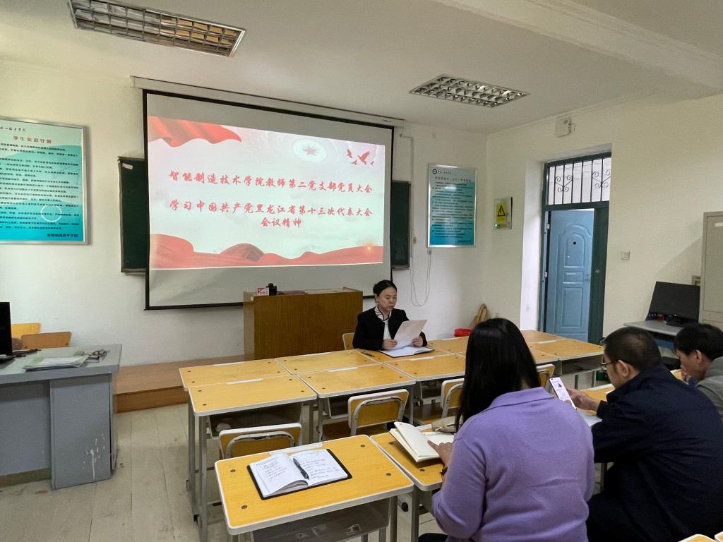 按照学校党委相关要求,5月17日下午,智能制造技术学院党支部召开了支部党员大会。此次会议的主题是深入学习并领会黑龙江省第十三次党代会和省委十三届二次、三次、四次全会的精神。会议在庄重而热烈的氛围中展开,支部书记鲍敏主持会议,全体党员参会。