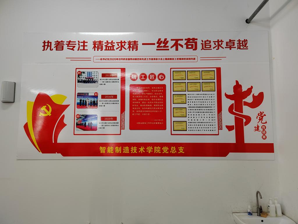 智能制造技术学院党总支为全面深入学习贯彻习近平新时代中国特色社会主义思想,贯彻党的十九大和十九届历次全会精神,突出迎接宣传贯彻党的二十大这条主线,学用新思想,践行新担当。精心设计、丰富内容,发挥阵地教育性和展示性功效,从宏观到微观、从理念到时间、从战略到策略,扎实做好宣传,全面营造党建引领的浓厚氛围。把宣传展板打造为深化学习教育、展示党组织风采、凝聚人员力量、推动廉洁从业的阵地,强化党建宣传广度和力度,助推党建工作高水平发展。