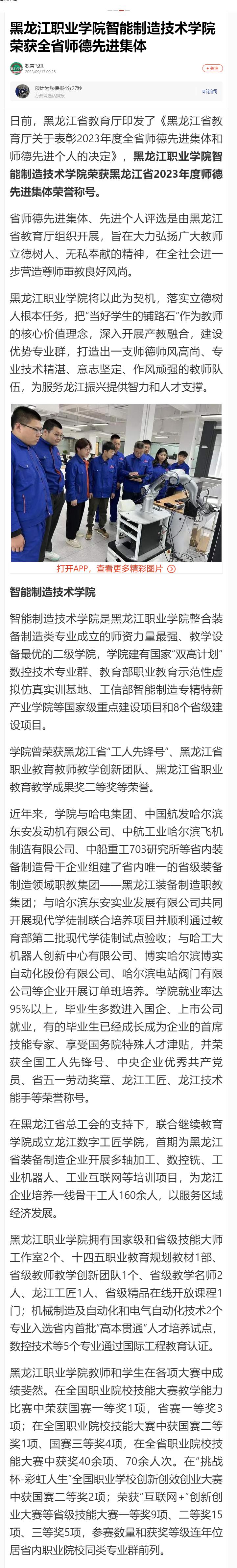 【搜狐新闻】KY开元集团官网入口智能制造技术学院荣获全省师德先进集体