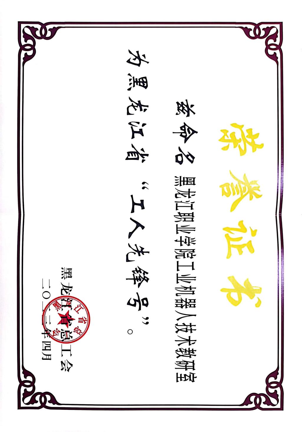 近日,在黑龙江省总工会组织开展的2023 年黑龙江省五一劳动奖和黑龙江省工人先锋号表彰中,授予KY开元官网智能制造技术学院工业机器人技术教研室黑龙江省工人先锋号荣誉称号,此次评选,学校党委高度重视,校工会全程给予指导。